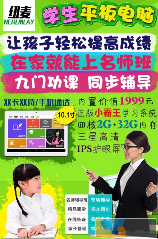 纽麦-小霸王学习平板电脑,幼儿小学到初高中同步辅导,点读学习/名师课堂/模拟考试/家长管理安卓上网,双卡双待打电话,GPS导航等。 四核2G+32G内存,三星10.1寸ips高清屏(真实的显示尺寸,真实CPU参数,真实内存容量)(内置正版小霸王学习系统)。专卖店价1599元,现促销价588元。(另外还有不带学习软件的电影游戏平板,流畅玩王者荣耀。)本产品通过国家商标认证注册商标,产品通过国家CCC强制认证,正规生产流水线。强大的售后服务,对售出产品有质量保证(非山寨贴牌三无产品),全国联保,一年保修。---诚征全国实体店分销商--